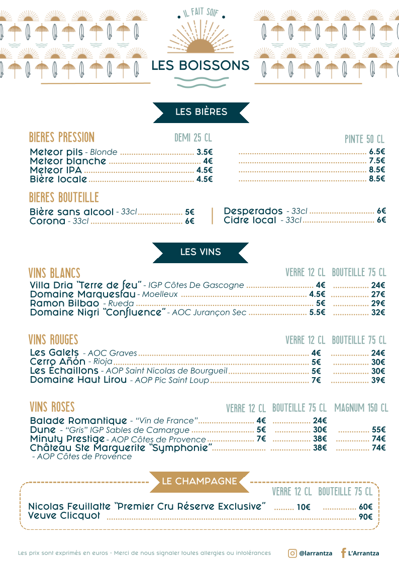 Located in the picturesque setting of Anglet, France, L'Arrantza offers a unique dining experience reminiscent of a beach club rather than a traditional restaurant. The menu features a variety of sharing plates perfect for casual gatherings, though the main courses have received mixed reviews regarding their quality. Guests rave about the ambiance, enjoying reggae music and sunset views that create an inviting atmosphere.